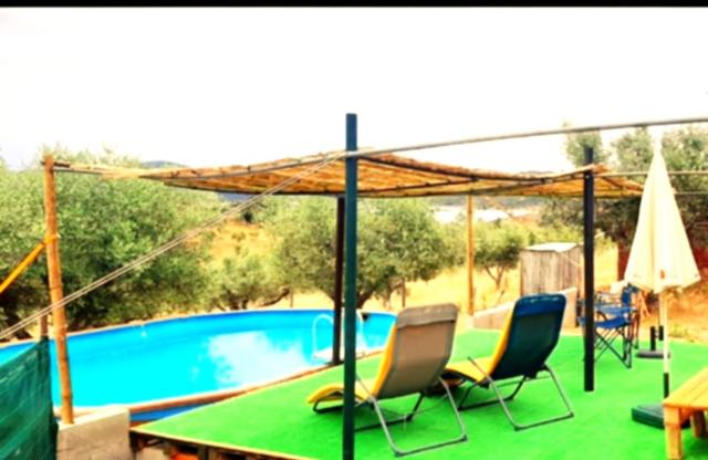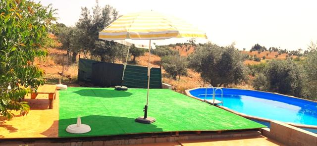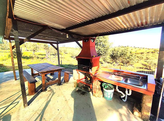 No ponto mais elevado do terreno encontramos um aprazivel logradouro com barbecue e piscina que convida a momentos de convivio entre amigos e familiares e onde se pode em simultâneo apreciar e desfrutar da magnifica vista, paisagem e sossego a que o local convida. A propriedade conta ainda com uma pequena charca e um olival e encontra-se vedada em todo o seu perimetro. No terreno podemos ainda encontrar 2 habitações com cerca de 50m2 cada e diversas arrecadações não registadas.