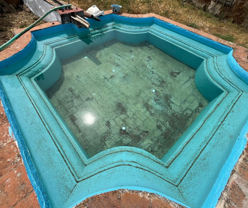 Duas piscinas incluídas, uma com bancos em pedra numa das laterais