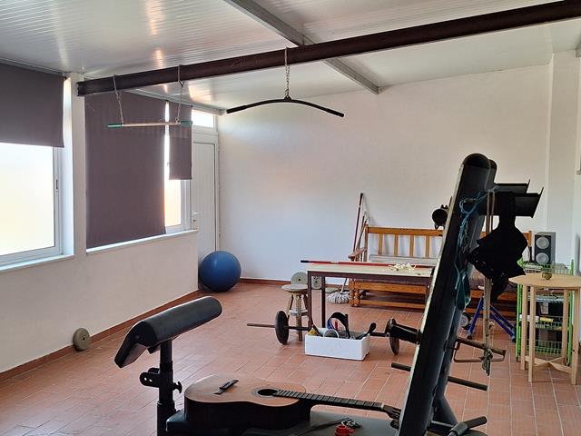 O primeiro piso oferece um amplo espaço em open space com grande potencial: pode ser facilmente convertido em dois quartos adicionais. Conta ainda com uma segunda sala, casa de banho e ginásio.