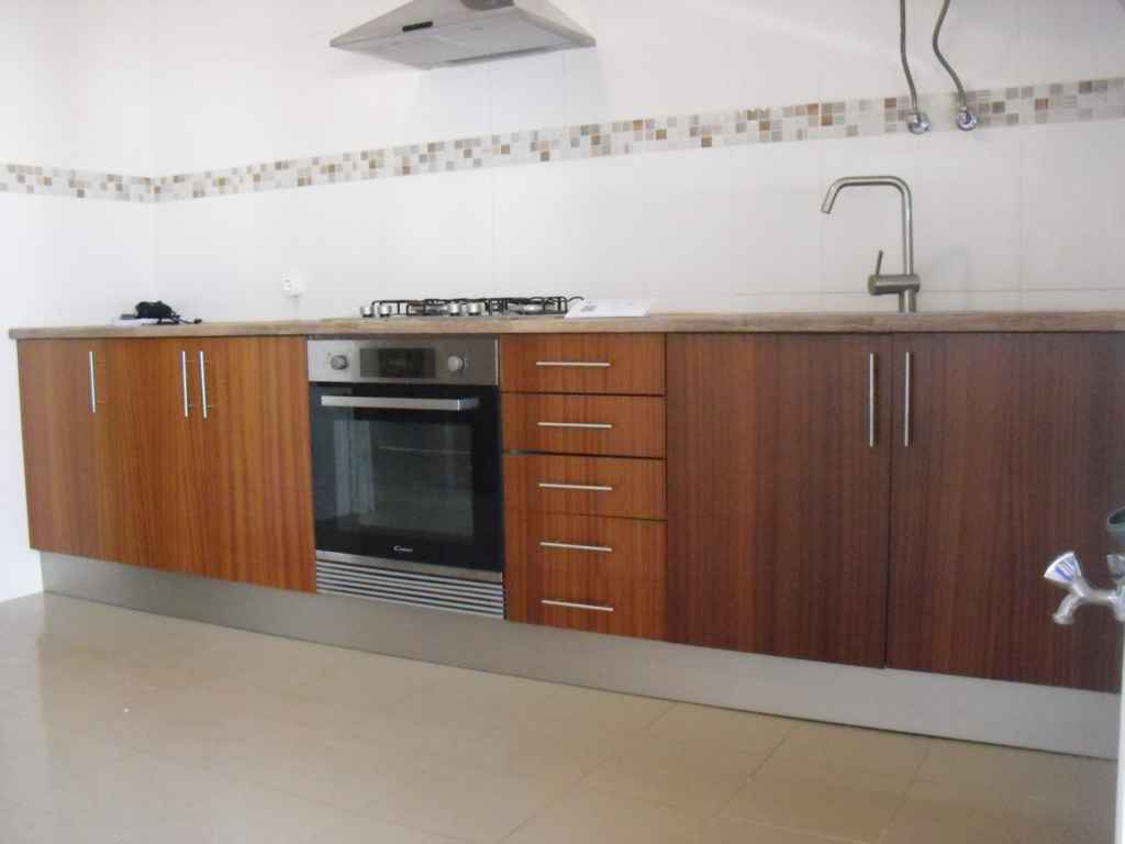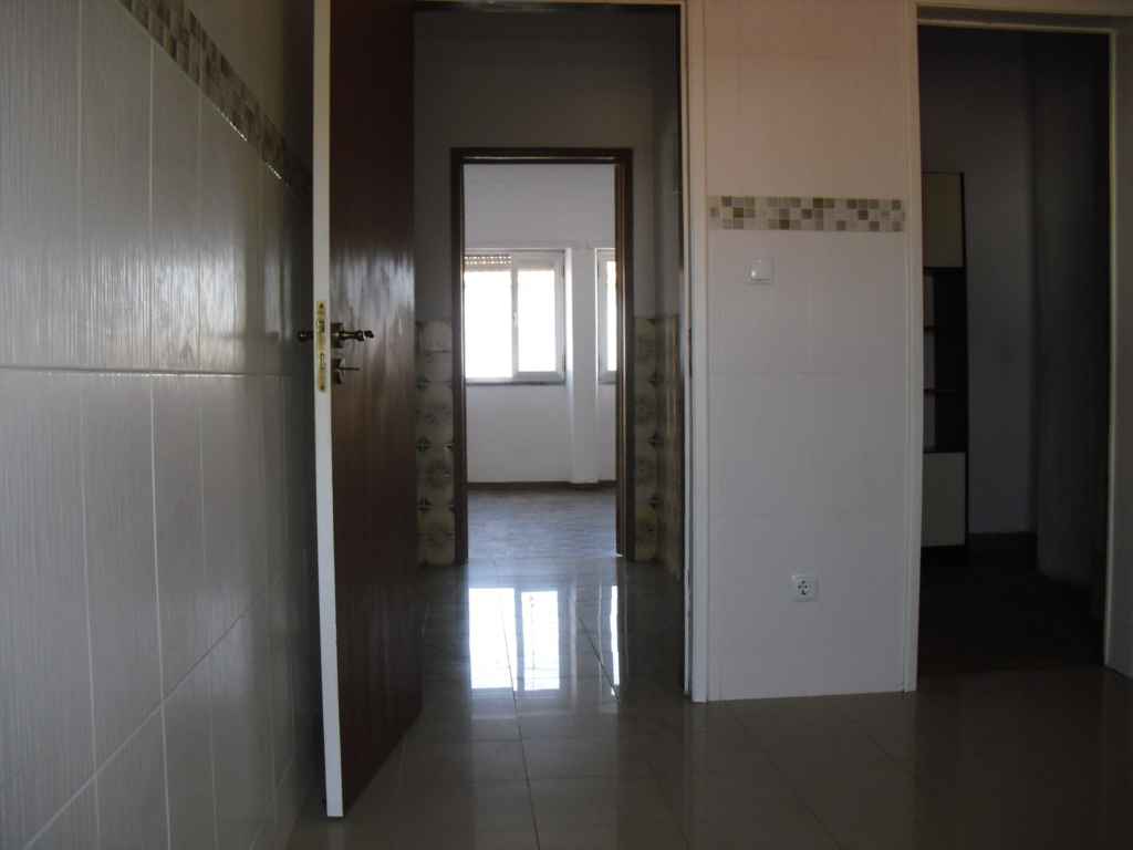 Zona de circulação, sala, cozinha equipada, WC, 3 quartos, arrecadação e duas varandas.